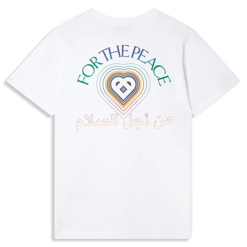 White Casablanca For The Peace T-shirt with colorful heart design and peace text in English and Arabic