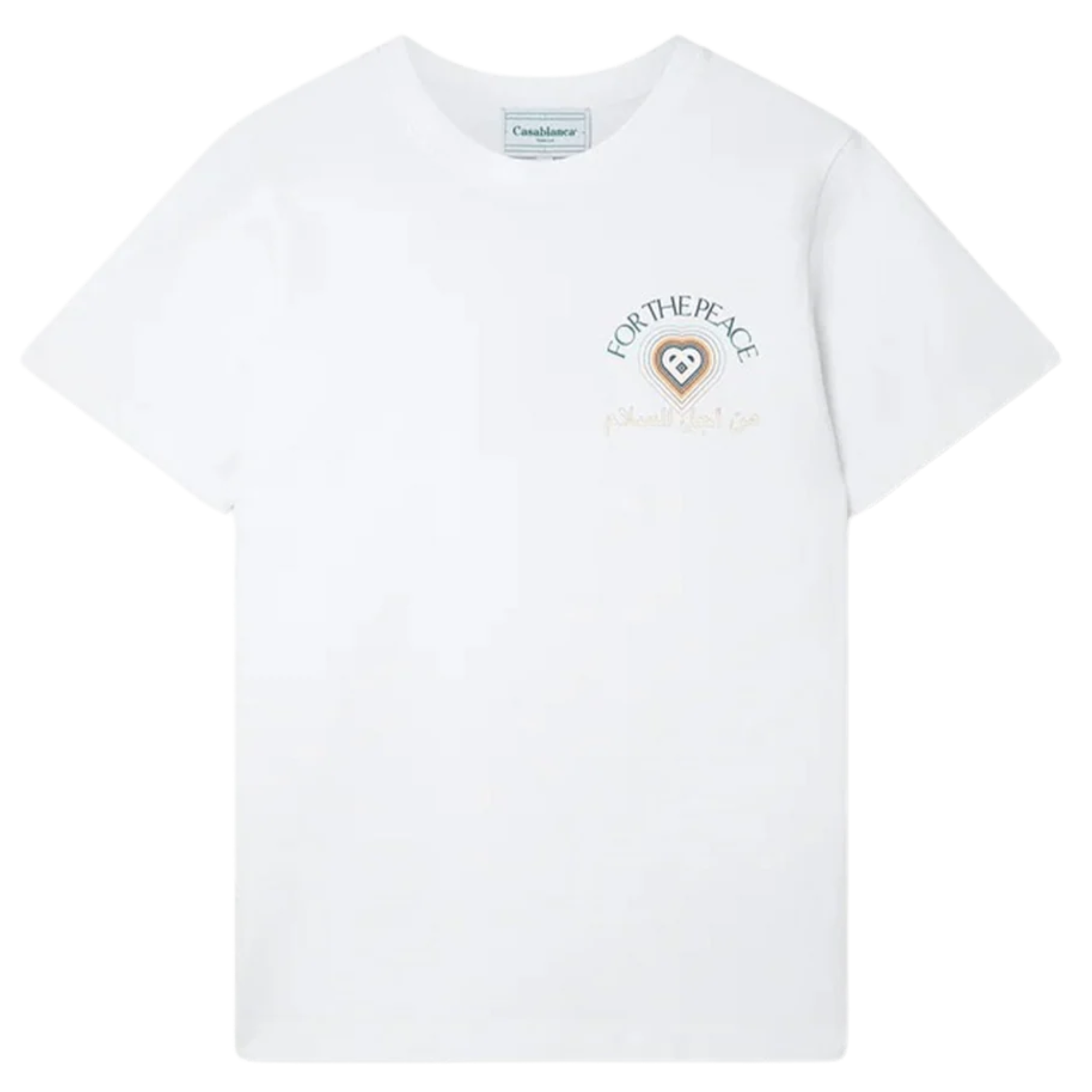 White Casablanca For The Peace T-shirt with heart logo and text design