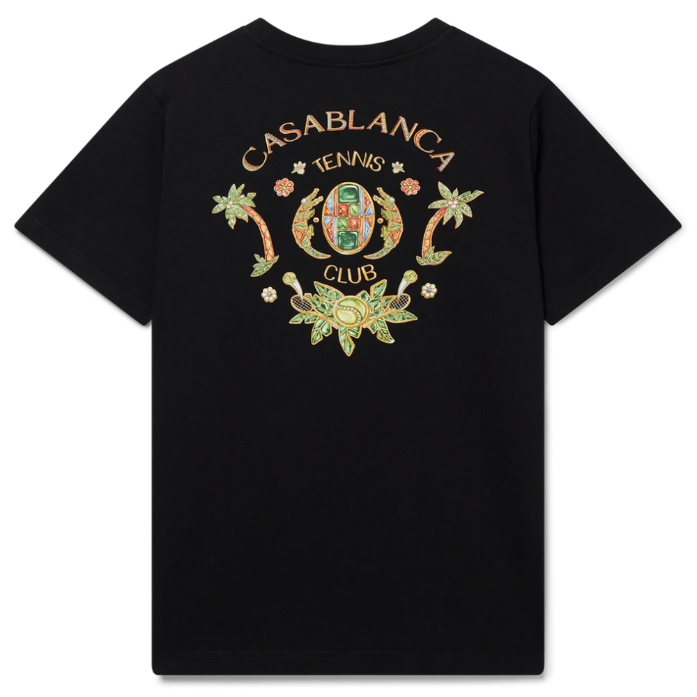Black Casablanca Joyaux Dafrique T-shirt with colorful tennis club graphic and palm trees design