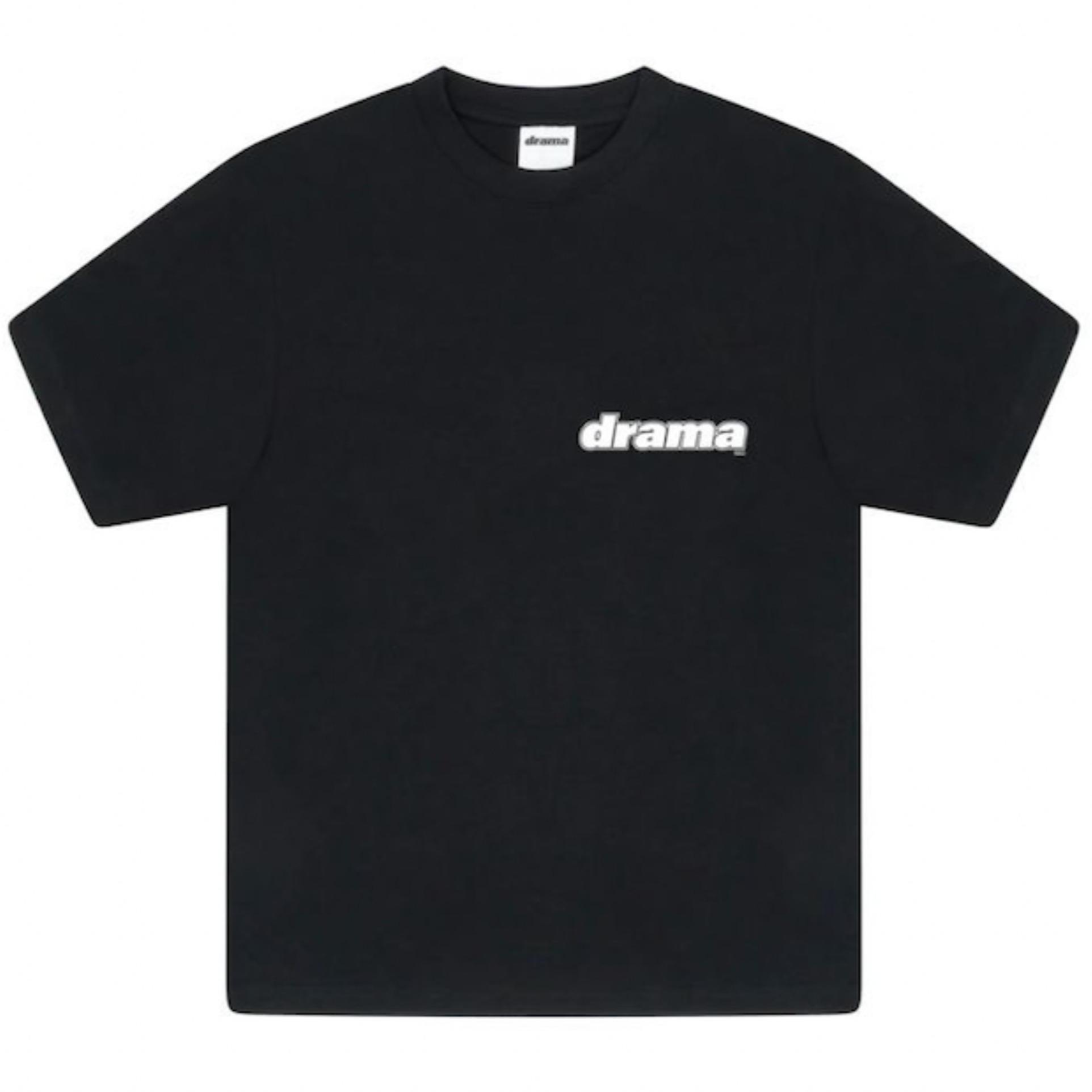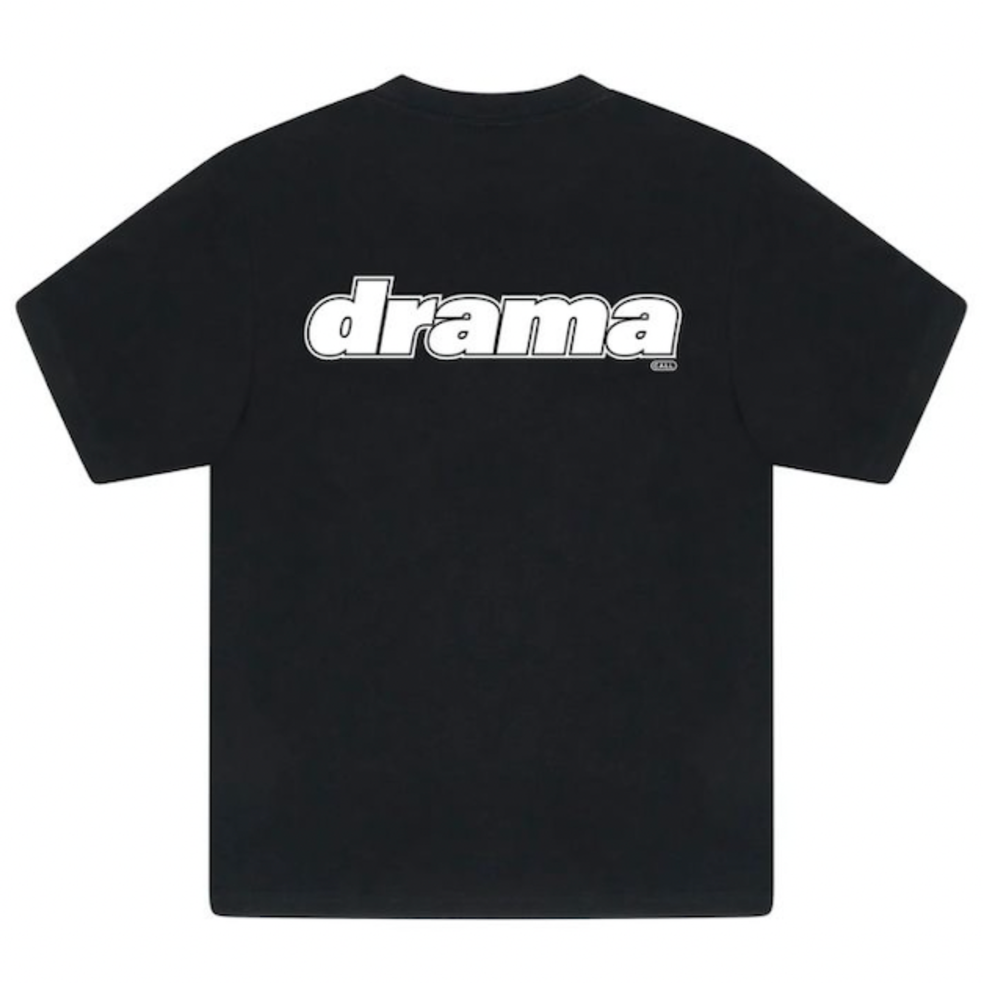Black Drama Call Staff tee with white bold "drama" text on the back
