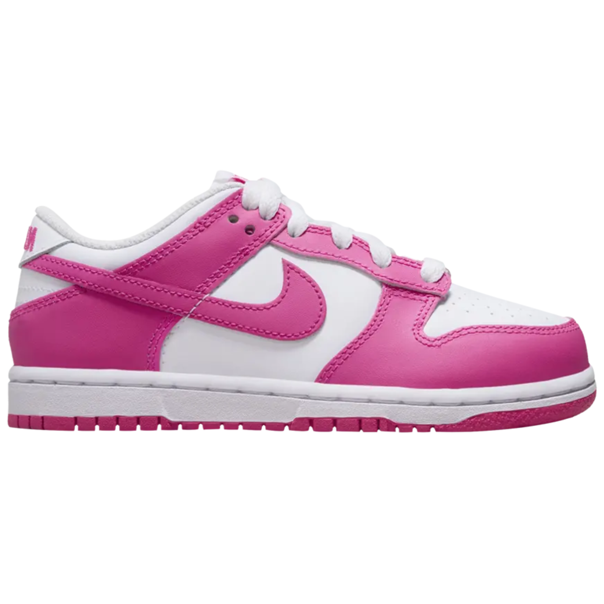 Dunk Low PS sneaker in white and laser fuchsia color with pink accents and white laces