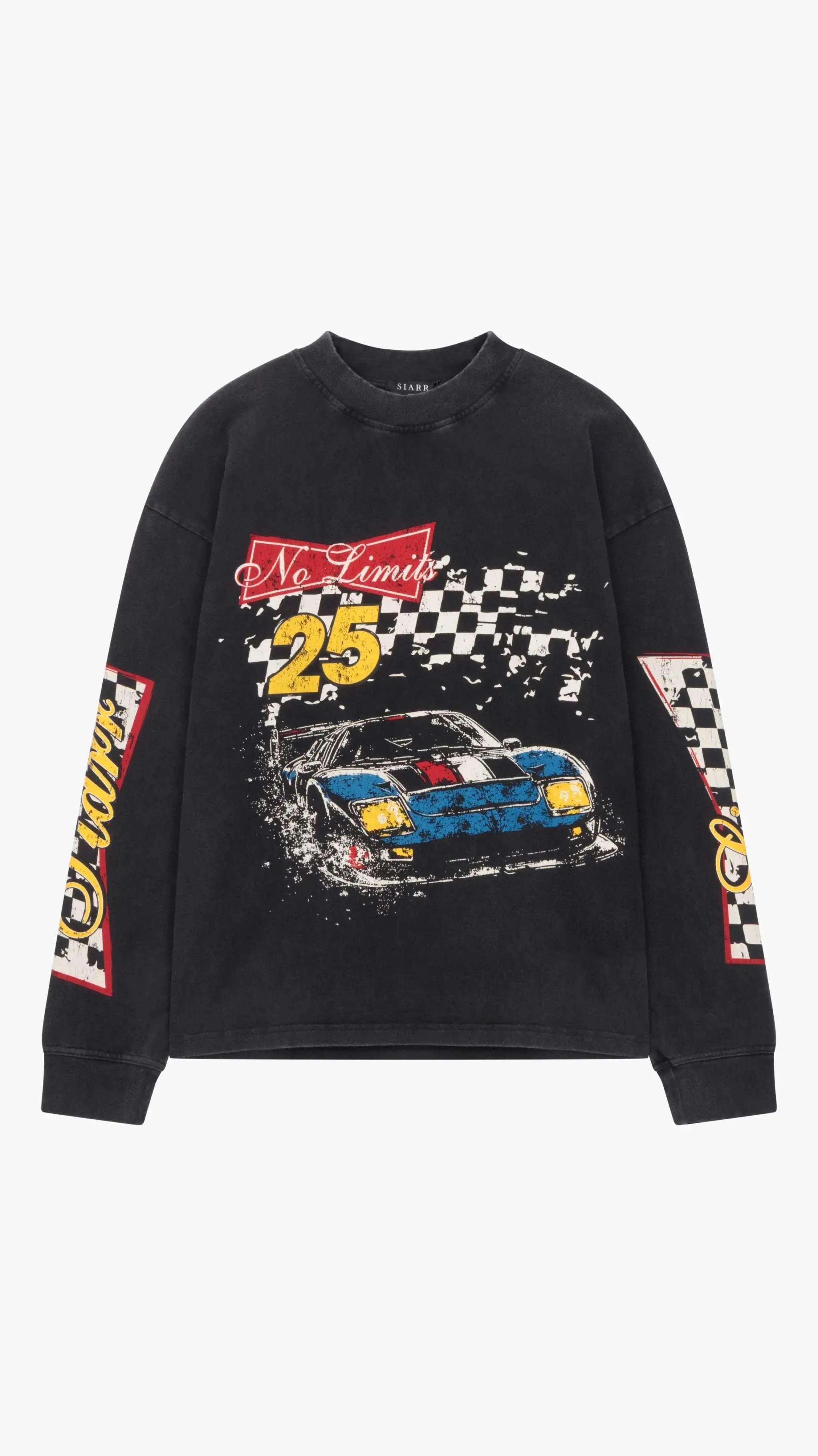 Siarr No Limits oversized black long sleeve tee with ribbed neck and screen print, heavy cotton fabric