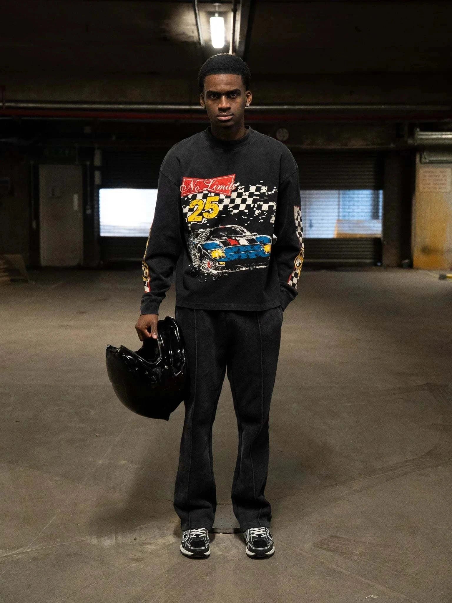 Siarr No Limits oversized long sleeve tee in washed black with ribbed neck and screen print