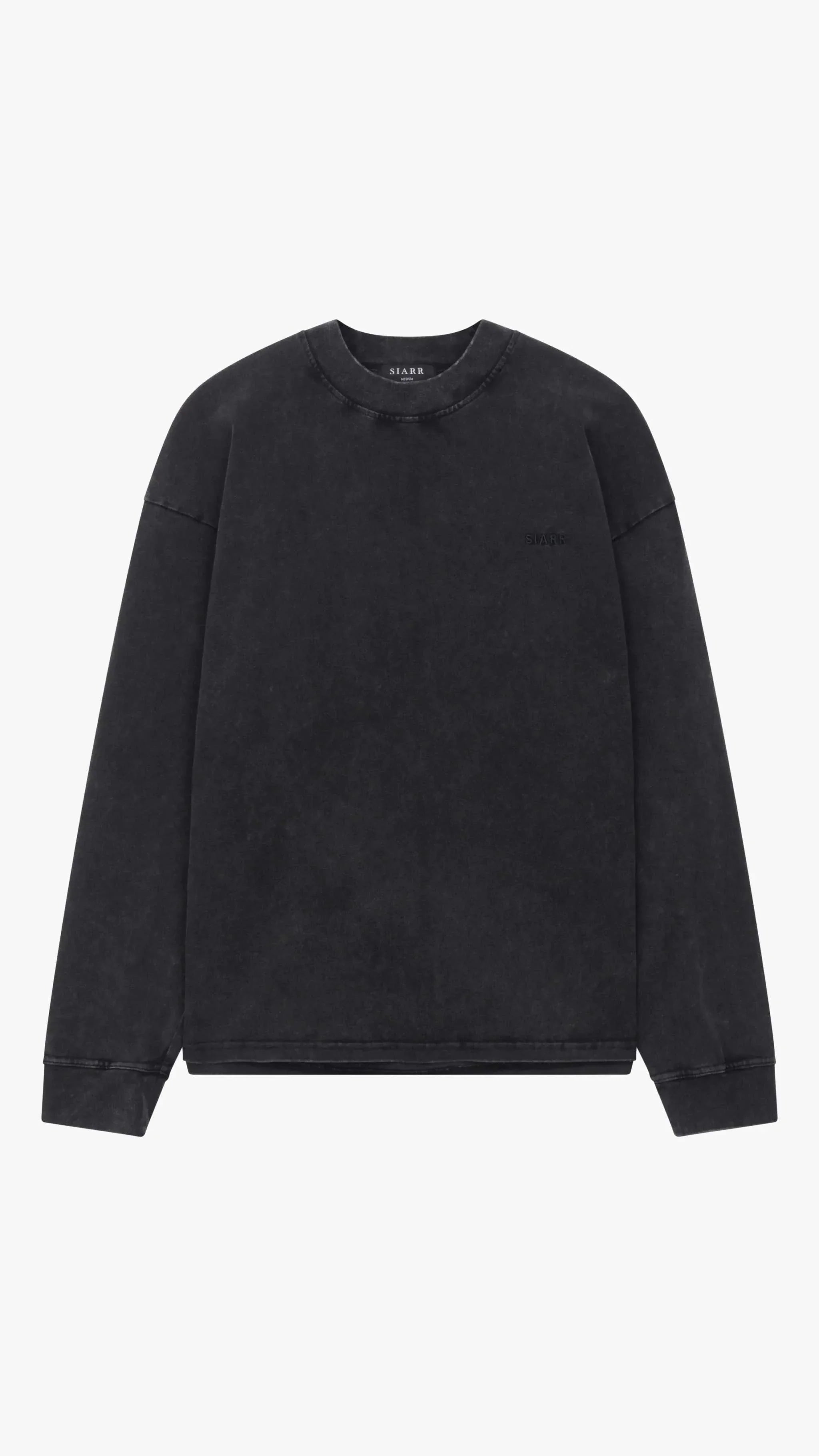 Siarr Washed L/S Tee oversized black long sleeve cotton shirt with ribbed neck and screen print