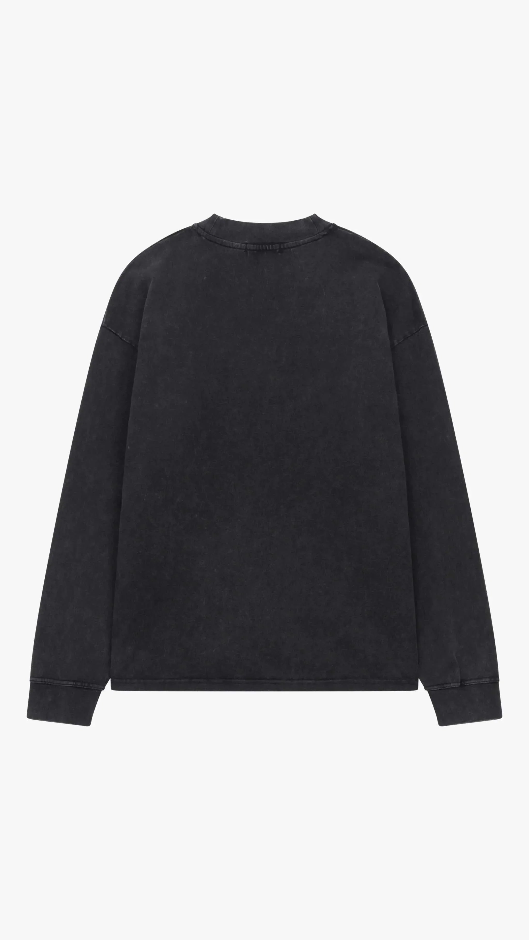 Siarr Washed L/S Tee oversized fit washed black long sleeve cotton shirt with ribbed neck and screen print