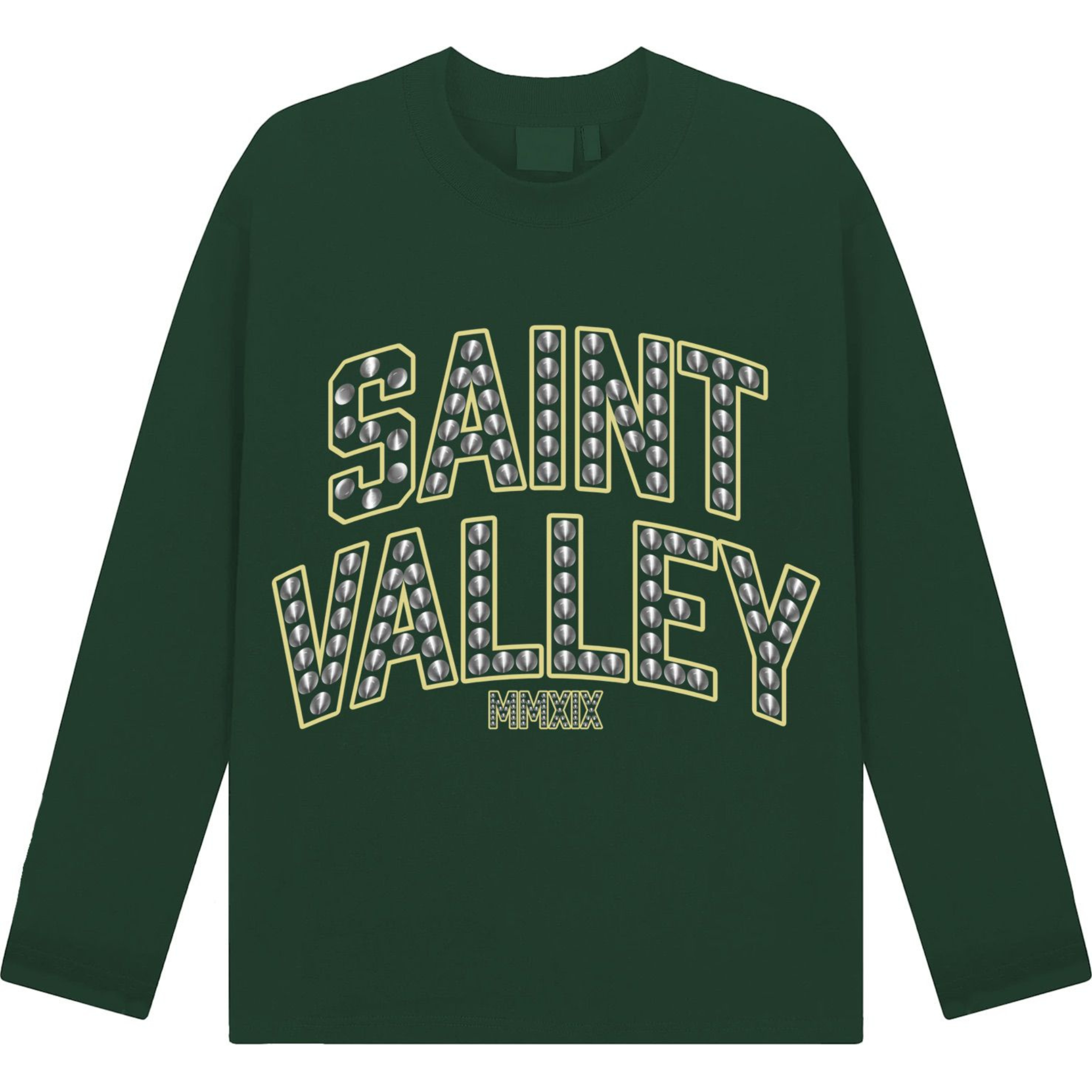 Suavo World Saint Valley green long sleeve t-shirt with studded lettering design