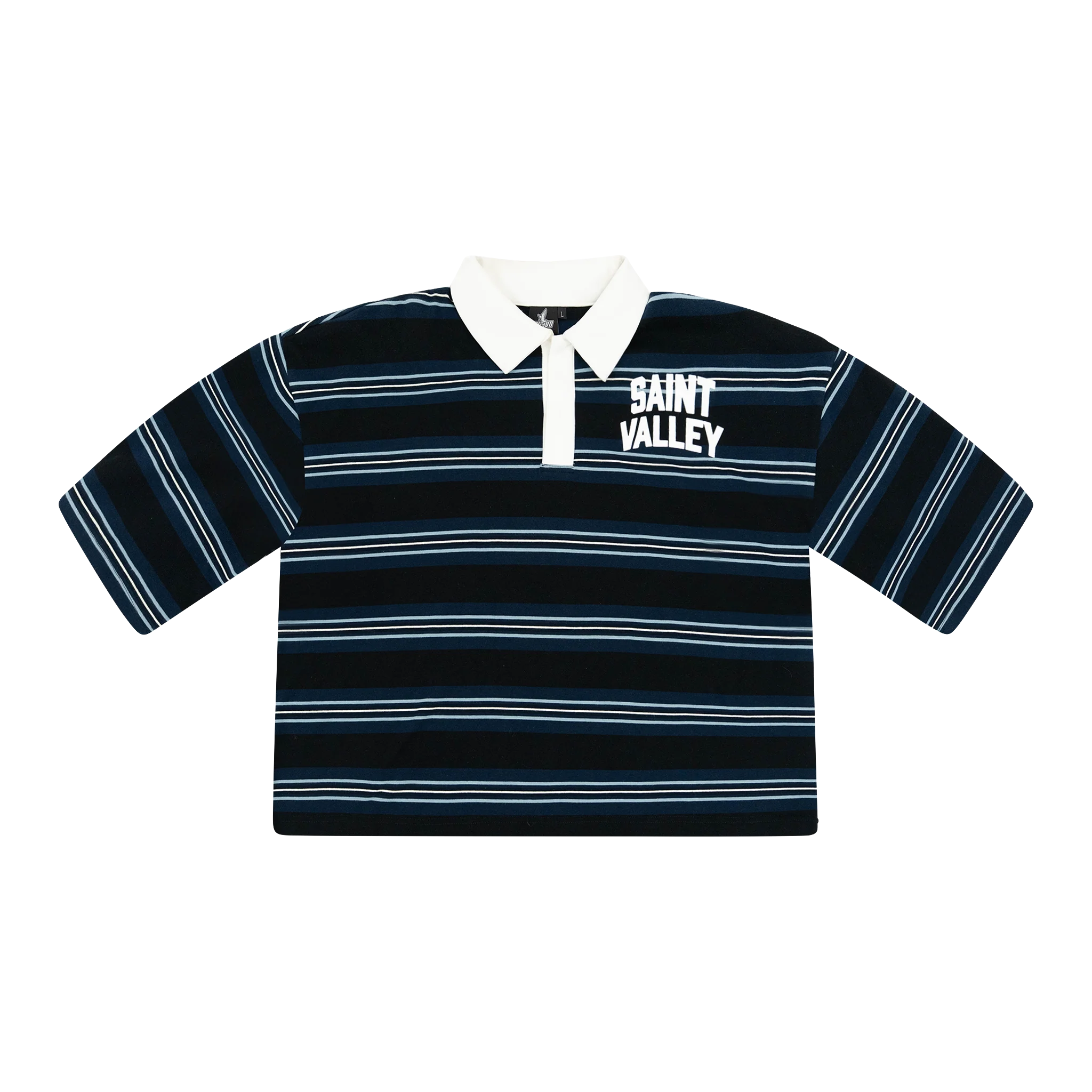 Suavo World navy striped Saint Valley polo shirt with white collar