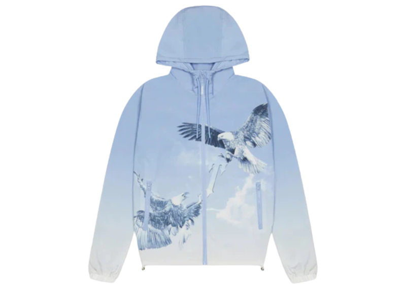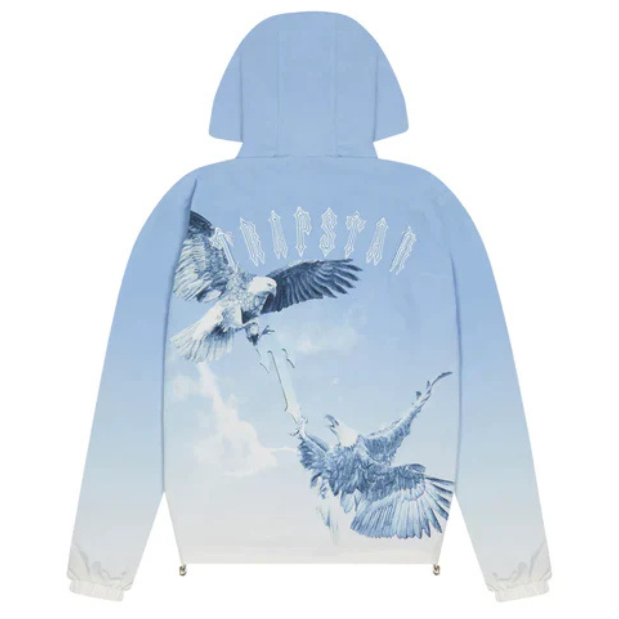 Trapstar Flying Birds light blue windbreaker jacket with eagle graphic and hood